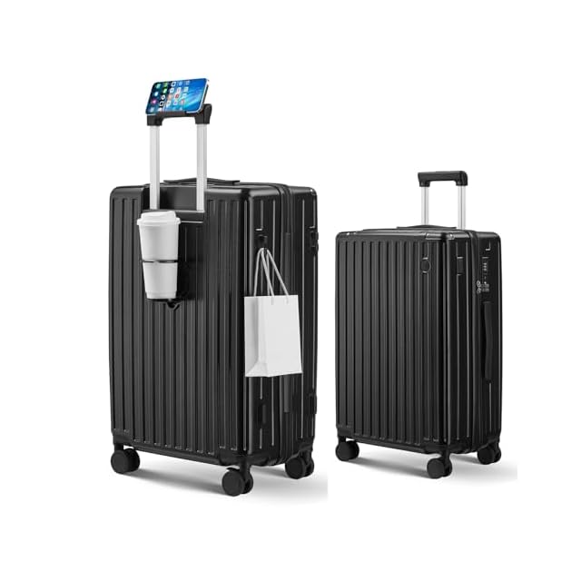 [Aecall] スーツケース 機内持ち込み キャリーケース ストッパー付き 超軽量 USBポート付き カップホルダー付き 携帯スタンド 隠しフック機能 キャリーバッグ 耐衝撃 静音 ダブルキャスター TSAローク ファスナータイプ キャリーバッグ 人気 おしゃれ 旅行 ビジネス 出張 留学 (ブラック, Mサイズ/4~7泊/託送必要)