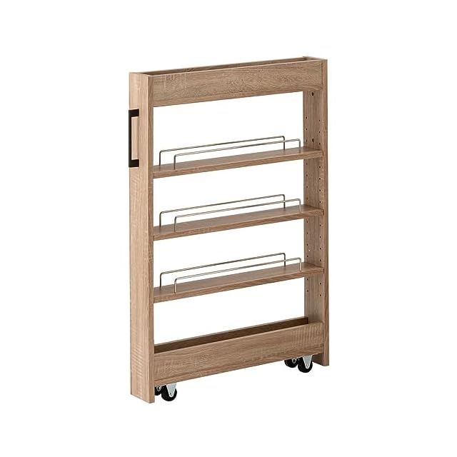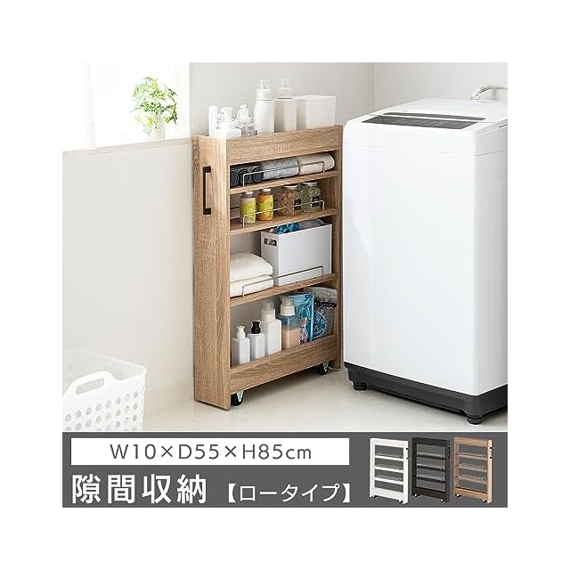 アイリスプラザ 『選べる54種』 隙間収納ロータイプ スリムラック ストッカー 調味料ラック 冷蔵庫横 洗濯機横 ライトナチュラル キッチンワゴン 幅10cm FRM-001-IR