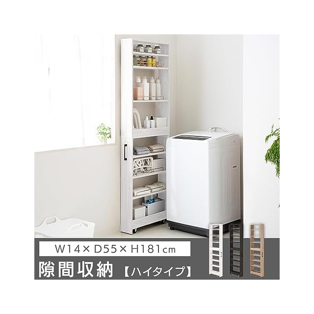 商品名:アイリスプラザ 『選べる54種』 隙間収納ハイタイプ 【高さ181cm×幅14cm】スリムラック ストッカー 調味料ラック 冷蔵庫横 洗濯機横 ホワイト キッチンワゴン 幅14cm FRM-012-IR