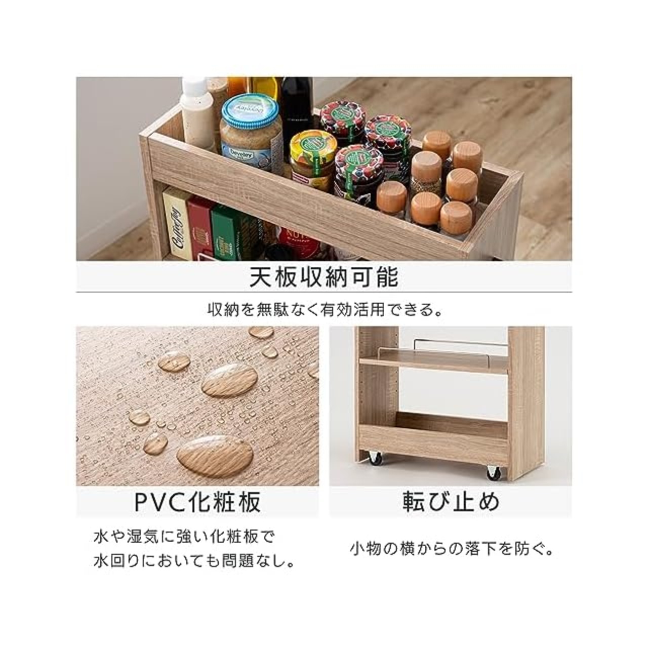 材質/板材:オールPVC(MDF)、キャスター:ポリプロピレン