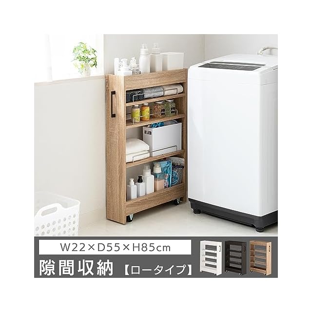 アイリスプラザ 『選べる54種』 隙間収納ロータイプ スリムラック ストッカー 調味料ラック 冷蔵庫横 洗濯機横 ライトナチュラル キッチンワゴン 幅22cm FRM-007-IR