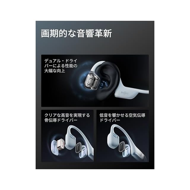 デュアルドライバーによる優れたサウンド:Shokz DualPitchを搭載し、オープンイヤーオーディオのルールを書き換えるShokzのまったく新しいフラッグシップヘッドフォン、OpenRun Pro 2が登場。この先進的なテクノロジーは、骨伝導スピーカーと空気伝導スピーカーを見事に組み合わせ、クリアで力強い音質をお届けします。