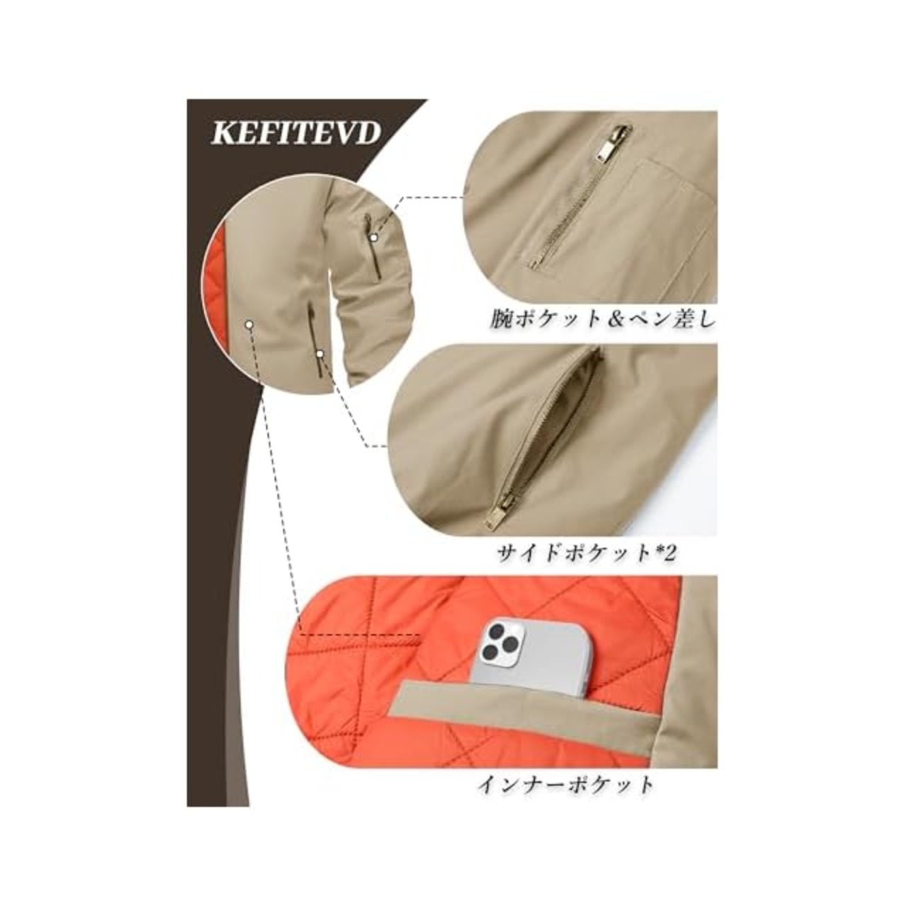 商品名:[KEFITEVD] ボンバージャケット メンズ 作業着 防寒ジャンパー 冬用 スタジャン ミリタリーアウター 防風 スポーツ アウトドア バイクジャンバー アウター 厚手 中綿ジャケット カーキ XL