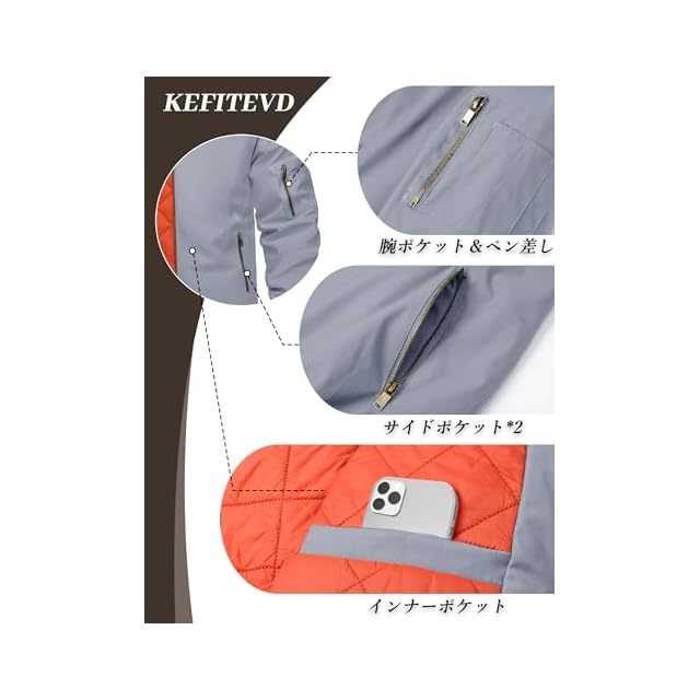 商品名:[KEFITEVD] ジャケット メンズ 大きいサイズ 冬用 作業着 ジャンパー 防寒服 ブルゾン 撥水 防風 アメカジ コート 無地 ワークウェア ジップアップジャケット 秋服 ライトグレー XL
