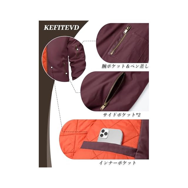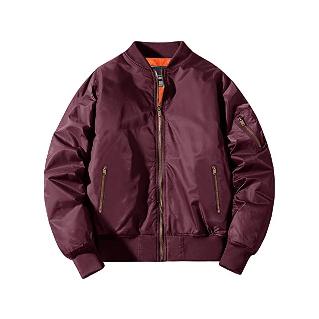 [KEFITEVD] アウター メンズ 軽量 作業服 コート 大きいサイズ ボンバージャケット 赤 スタジアムジャンパー カーゴジャケット 防寒 無地 普段着 ブルゾン カジュアル ワインレッド 3XL