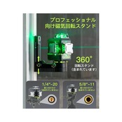商品名:LasGoo レーザーレベル セルフレベリング 360°x3 グリーンクロスライン レーザーツール 工事や絵画の吊り下げに、リモコン付き、プロフェッショナル磁気回転スタンド、2 x 充電式リチウムイオン電池、LG-3Ds