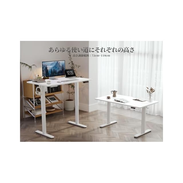 【高さ調節可能】昇降範囲:72〜118cm、昇降速度:20mm/s。ゲーミングデスク、オフィスデスク、勉強机など、使い方に合わせて高さを自由に調整することができます。また、よく使う高さを3つまで記憶することができますので、お気に入りの高さにワンタッチで戻ることができます。
