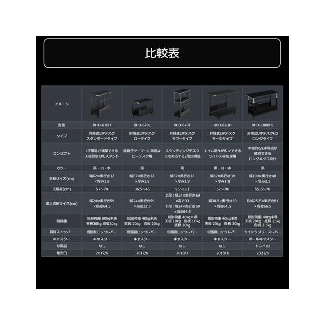 Bauhutte ( バウヒュッテ ) 昇降式 L字デスク ラージ パソコンラック pcラック ( 幅 39 × 奥行 82 高さ 57-78 cm ) ブラック BHD-820H-BK