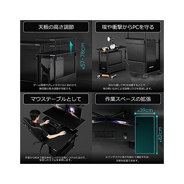 デスクと並べて設置するだけで簡単にL字環境が構築できる、昇降式のCPUスタンドです。