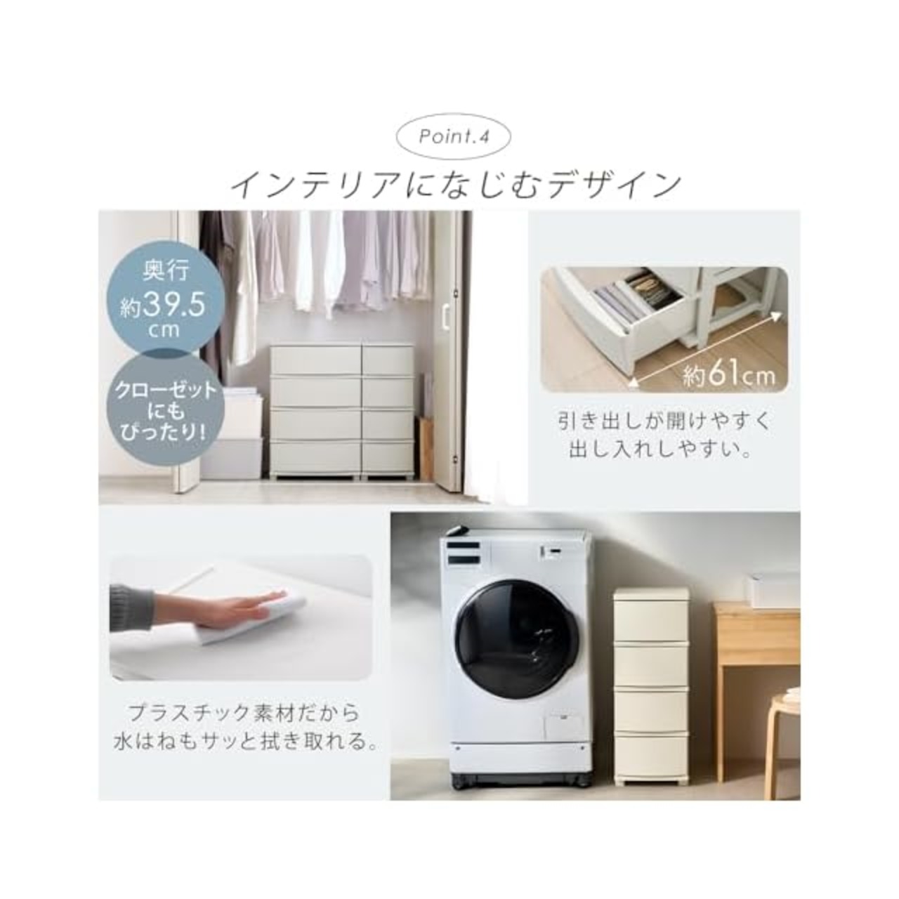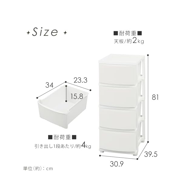 商品内容:奥行39.5cm x 幅30.9cm x 高さ81cm (引き出し数 4)