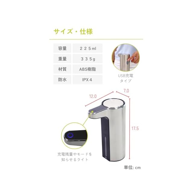 商品名:EKO アロマソープディスペンサー 自動 泡タイプ ホワイト 吐出量3段階 洗剤詰り防止 内部洗浄機能付き USB充電 EK6088F-WH