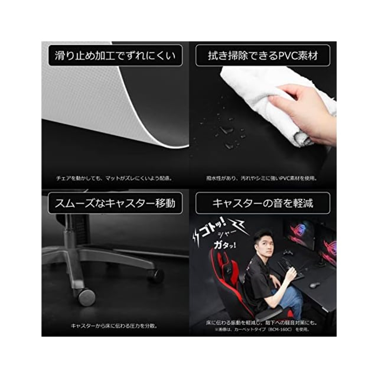 【スムーズに移動】 キャスターから床に伝わる圧力を分散。チェアのスムーズな移動をサポートします。