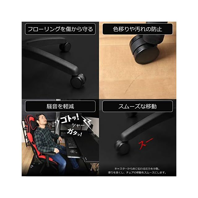 ゲーミングチェアのキャスターによるキズ・へこみから床を保護します。