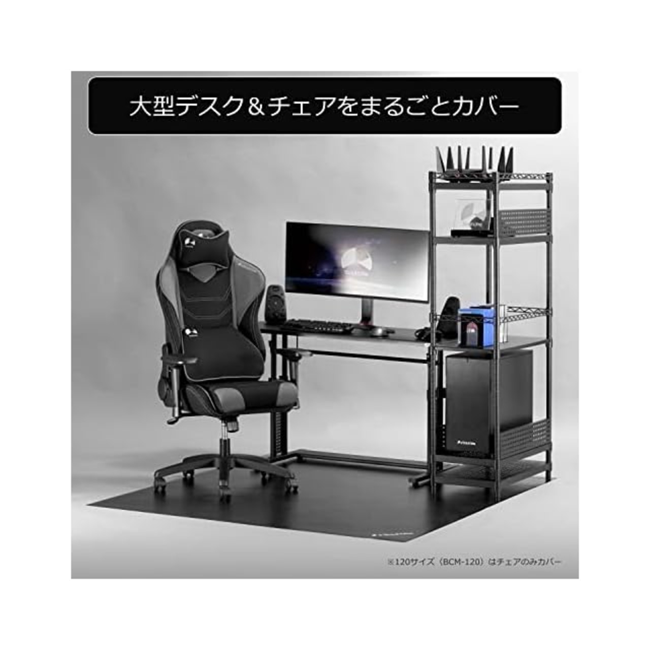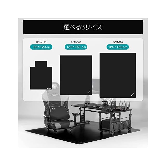 【デスクまでフルカバー】大型デスク&チェアをまるごとカバーする超大判仕様。「デスクごと」タイプは130×160cmと、さらに大きくなった160×180cmの2サイズから選べます。
