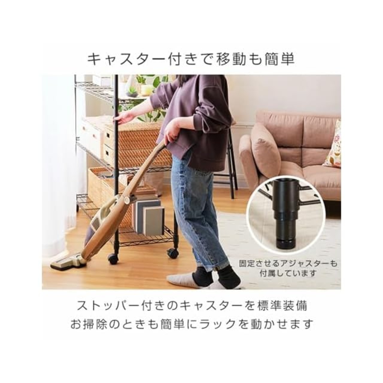 サイズ:幅61×奥行41×高さ151cm 材質 シェルフ(棚)・ポール スリーブ:スチール/スリーブ・アジャスタ―:ABS樹脂