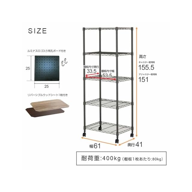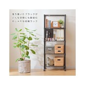 商品名:ドウシシャ ルミナス ノワール ラック 5段 幅60 奥行40 キャスター付き ウッドシート付き スチールラック 黒 ブラック 収納棚 おしゃれ サビに強い 組立簡単 幅61×奥行41×高さ151cm ポール径25mm 耐荷重80kg EHN-60155