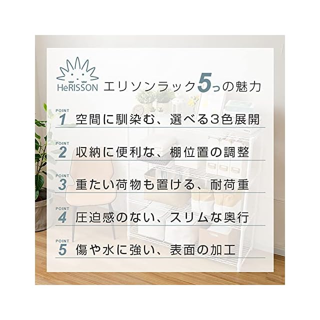 商品名:ドウシシャ ルミナス エリソンラテ スチールラック キャスター付 ホワイト スリム 白 5段 幅60 おしゃれ お部屋に馴染みやすい優しい色味 収納 棚 全体耐荷重400kg 幅61×奥行41×高さ174cm 水や傷に強い キッチン ポール径25mm EHE60185WH