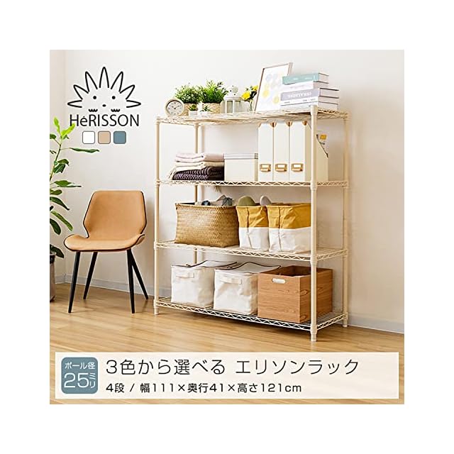 ドウシシャ ルミナス エリソンラテ スチールラック キャスター付 ホワイト 白 4段 幅110 おしゃれ お部屋に馴染みやすい優しい色味 収納 棚 全体耐荷重320kg 幅111×奥行41×高さ121cm 水や傷に強い キッチン ポール径25mm EHE11124WH