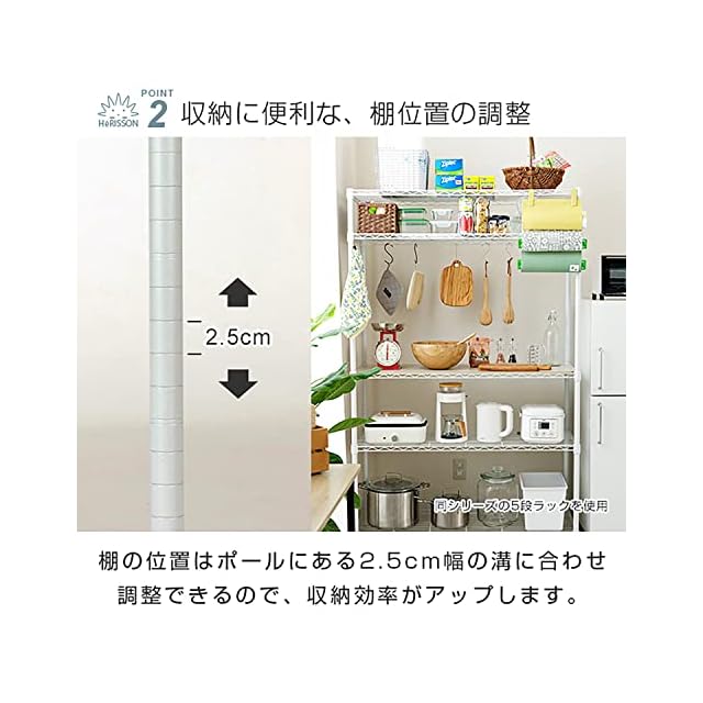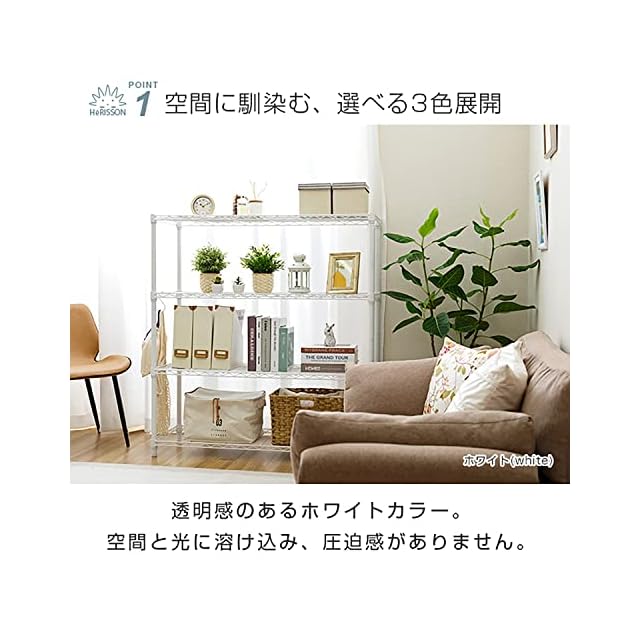 商品名:ドウシシャ ルミナス エリソンラテ スチールラック キャスター付 ホワイト 白 4段 幅110 おしゃれ お部屋に馴染みやすい優しい色味 収納 棚 全体耐荷重320kg 幅111×奥行41×高さ121cm 水や傷に強い キッチン ポール径25mm EHE11124WH