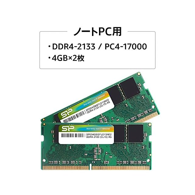 商品名:シリコンパワー ノートPC用メモリ DDR4-2133(PC4-17000) 4GBX2枚 260pin 1.2V CL15 SP008GBSFU213N22