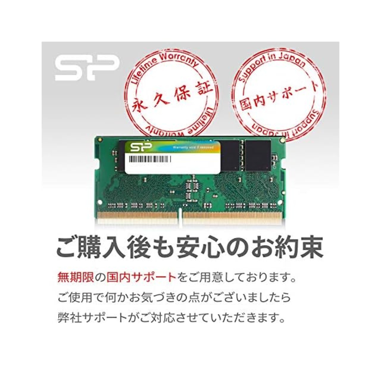 商品名:シリコンパワー ノートPC用メモリ DDR4-2400(PC4-19200) 8GB×1枚 260Pin 1.2V CL17 SP008GBSFU240B02