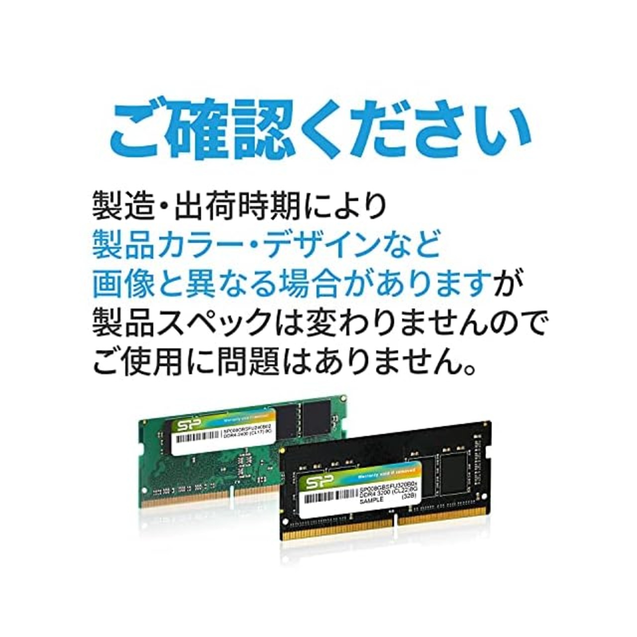 商品名:シリコンパワー ノートPC用メモリ DDR4-3200 (PC4-25600) 8GB×2枚 (16GB) 260Pin 1.2V CL22 SP016GBSFU320B22