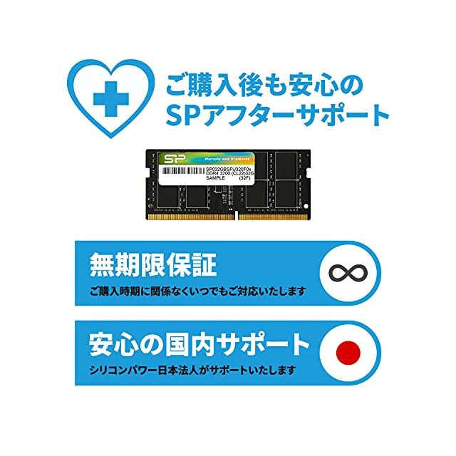 商品名:シリコンパワー ノートPC用メモリ DDR4-3200(PC4-25600) 16GB×1枚 260Pin 1.2V CL22 SP016GBSFU320F02