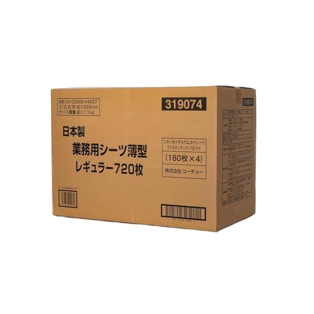 コーチョー 日本製 業務用ペットシーツ 薄型 レギュラー 720枚入 (180枚入り×4袋)