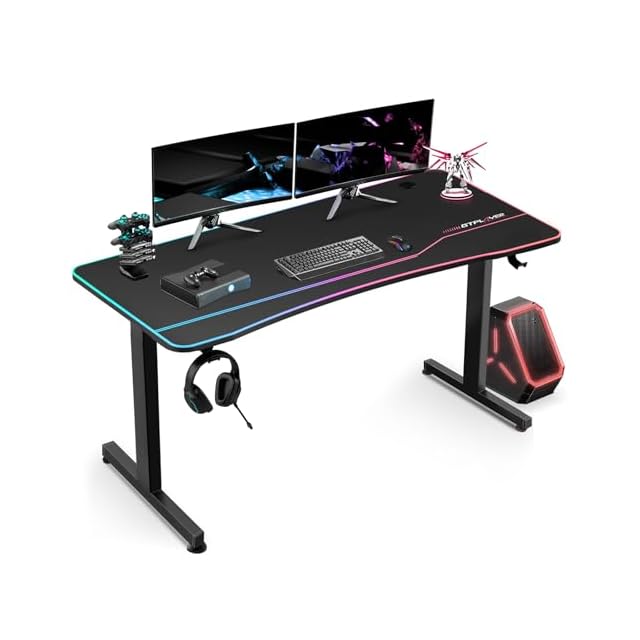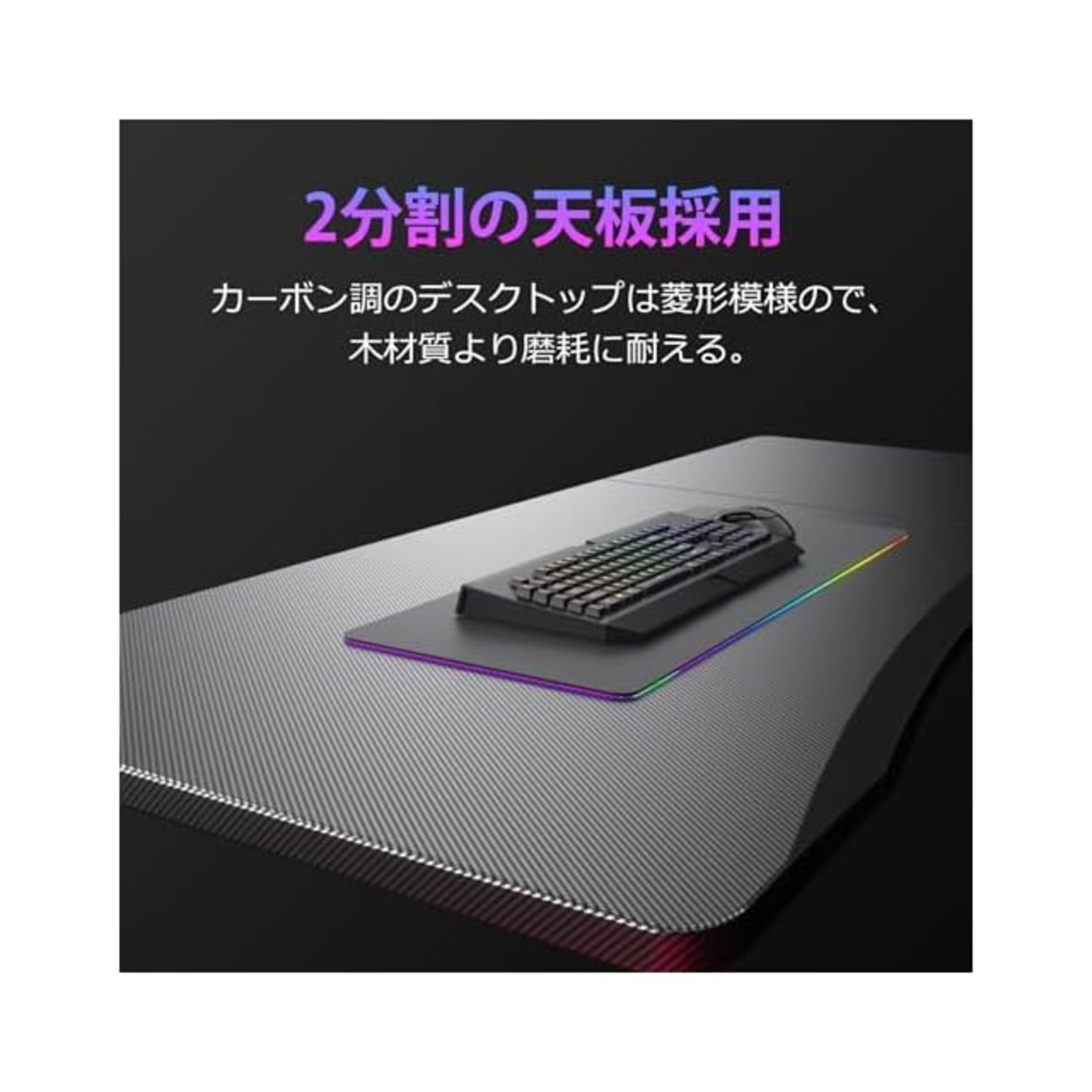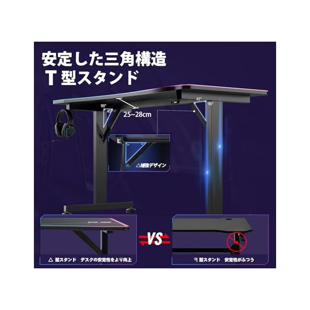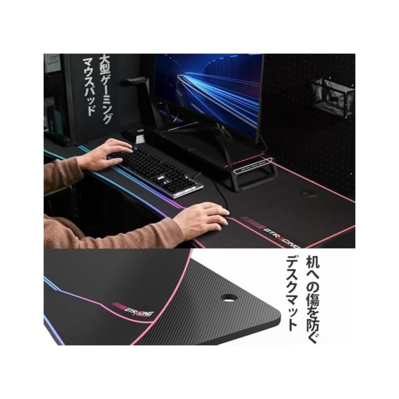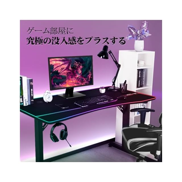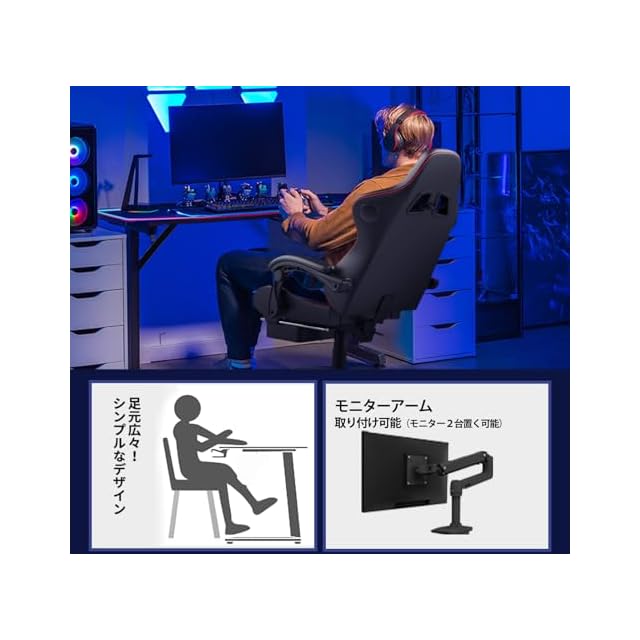 【ゲームプレイの環境を彩る】プロゲーマー向けに設計。天板はモニターアーム取り付け可能で、作業スペースをより有効利用できる。リアルな臨場感をプラスします。