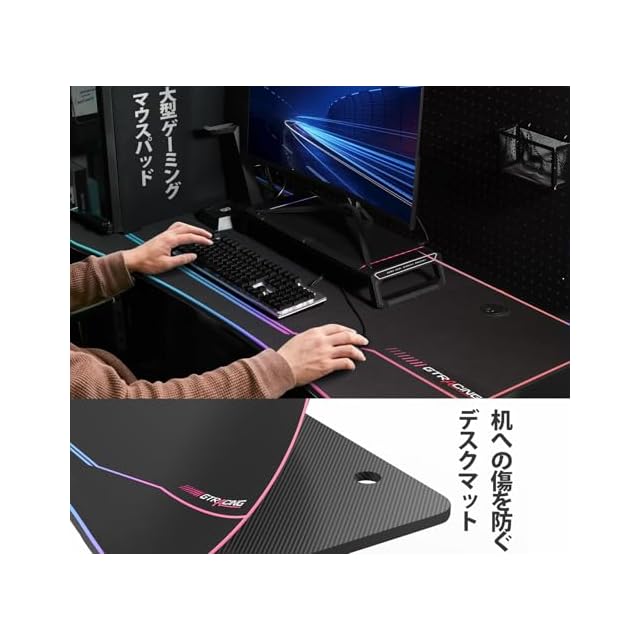 商品名:GTRACING ゲーミングデスク パソコンデスク 「メーカー二年」 デスクマット付き 炭素繊維天板(2割天板) モニターアーム対応 頑丈なフレーム安定 組立簡単 机 オフィスワークテーブル pcデスク ワーク ゲームテーブル 作業机 幅140cm×奥行60cm 耐荷重100kg 新開発作品 カラフル
