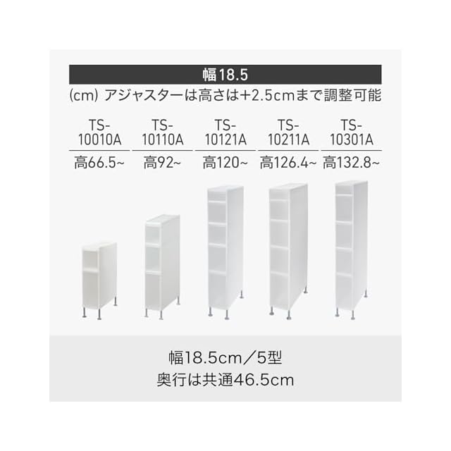 商品名:ライクイット (like-it) ランドリー 収納 すき間 引出し スリム 5段 (アジャスター付) 約幅18.5×奥46.5×高126.4~128.9cm ホワイト 日本製 TS-10211A 洗濯機 横 スペース 隙間収納