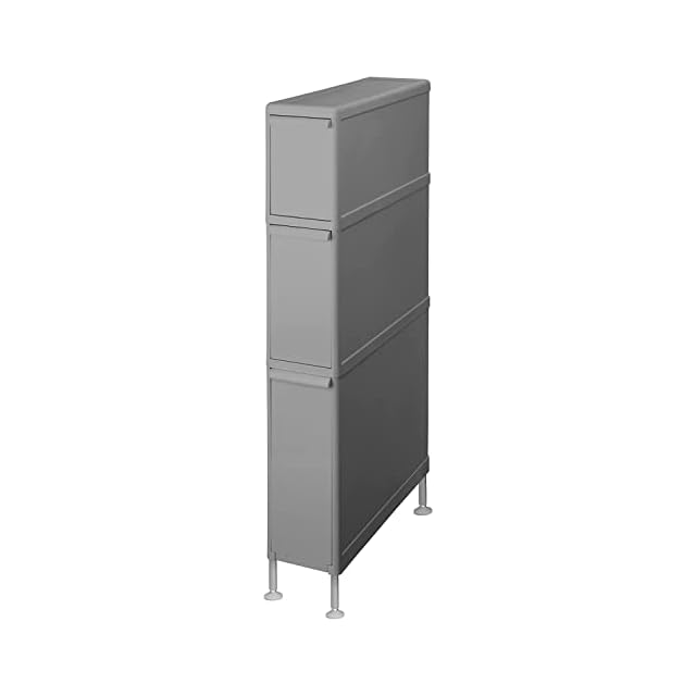 ライクイット (like-it) ランドリー 収納 すき間 引出し スーパースリム 3段 約幅15.5×奥46.5×高92~94.5cm オールグレー 日本製 FTS-111LA(アジャスター付き) 洗濯機 横 スペース 隙間収納