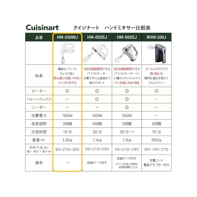 商品名:クイジナート スマートパワー 3スピード ハンドミキサー 自立設計 スピード調節 ホワイト HM-030WJ