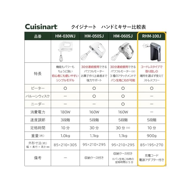 商品名:クイジナート ハンドミキサー コードレス 充電式 RHM-100J