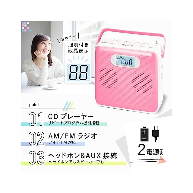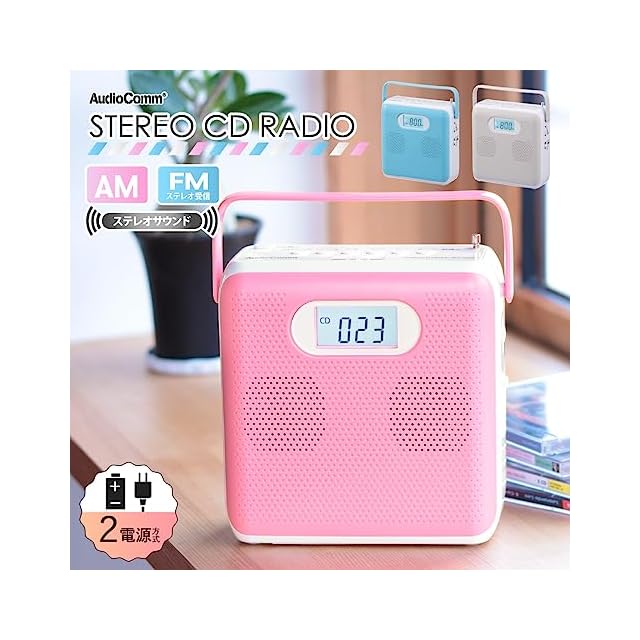 商品名:オーム電機 AudioComm CDプレーヤー ポータブル ステレオ ラジオ 小型 CDラジオcdラジカセ キュービックデザイン コンパクト 小型 英会話 語学学習 AC電源 乾電池 ピンク RCR-600Z-P 03-5025 OHM