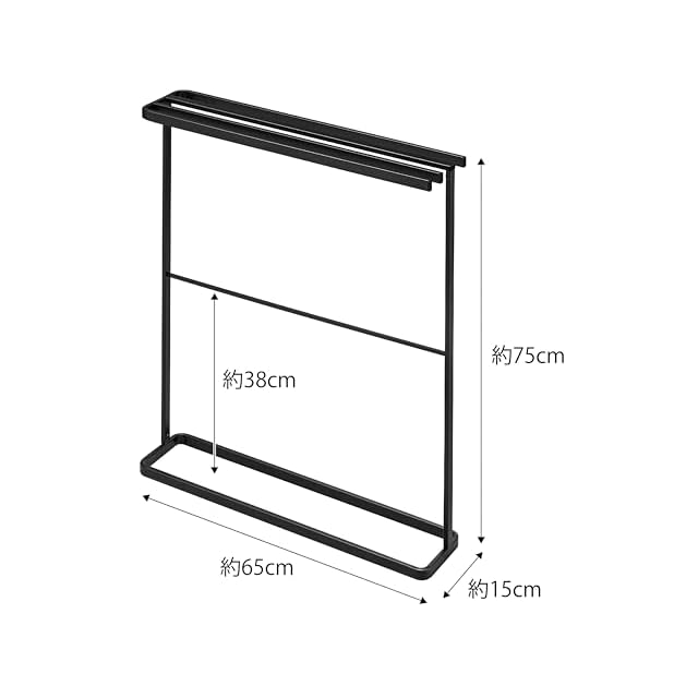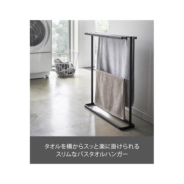 山崎実業(Yamazaki) 横から掛けられる バスタオルハンガー スリム ブラック 約W65XD15XH75cm タワー tower タオルハンガー 物干し 5577