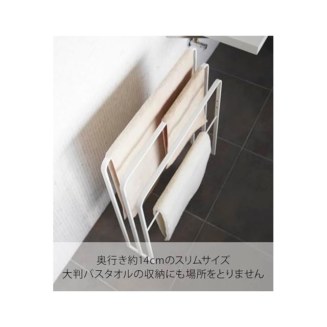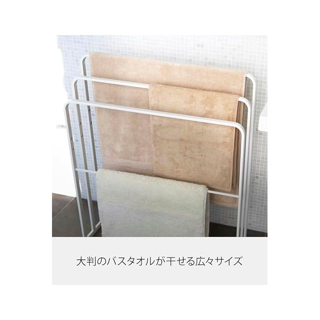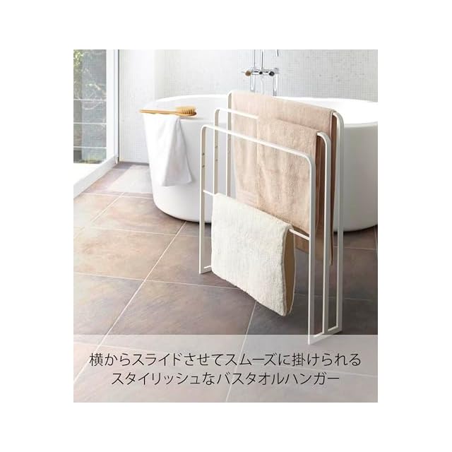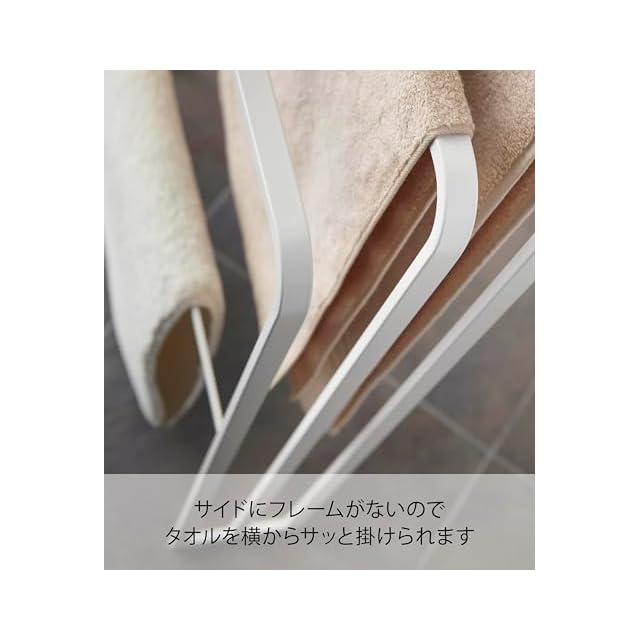 山崎実業(Yamazaki) 横から掛けられるバスタオルハンガー 3連 ホワイト 約W70XD14XH81cm タワー 掛けやすい 大判サイズも干せる 4979