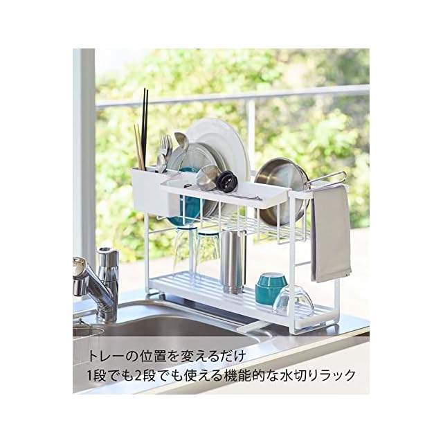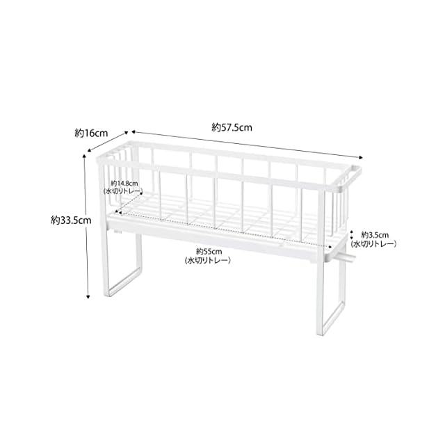 商品名:山崎実業(Yamazaki) スリム スリーウェイ 水切り ワイヤーバスケット 2段 ホワイト 約W57.5XD16XH33.5cm タワー 置き場所を選ばない スリム設計 5070
