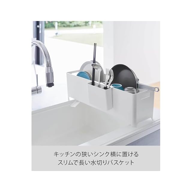商品名:山崎実業(Yamazaki) スリム 水切りバスケット ロング ホワイト W55.5×D16.4×H16cm タワー 水切りかご 4314