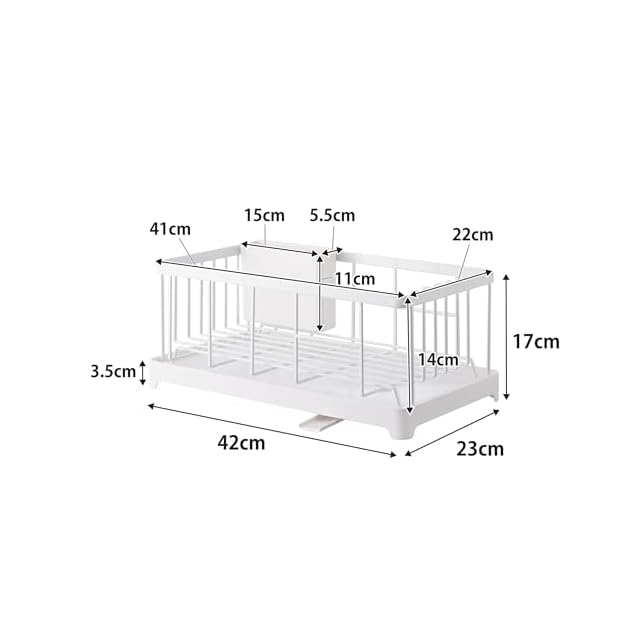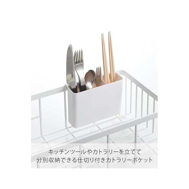 素材・材質: ワイヤーバスケット:スチール(ユニクロメッキ+粉体塗装),水切りトレイ・ポケット:ABS樹脂,水はけ:ポリプロピレン,水止栓:シリコーン