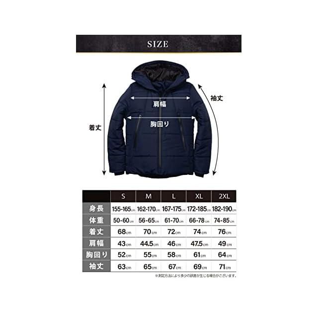 【 商品詳細 】生地・中綿共に高級ポリエステルを95%、ダウン5%使用。カラーはブラック、ネイビー、グレー、チャコールグレー。サイズはSサイズ、Mサイズ、Lサイズ、XLサイズ、XXLサイズをご用意しております。