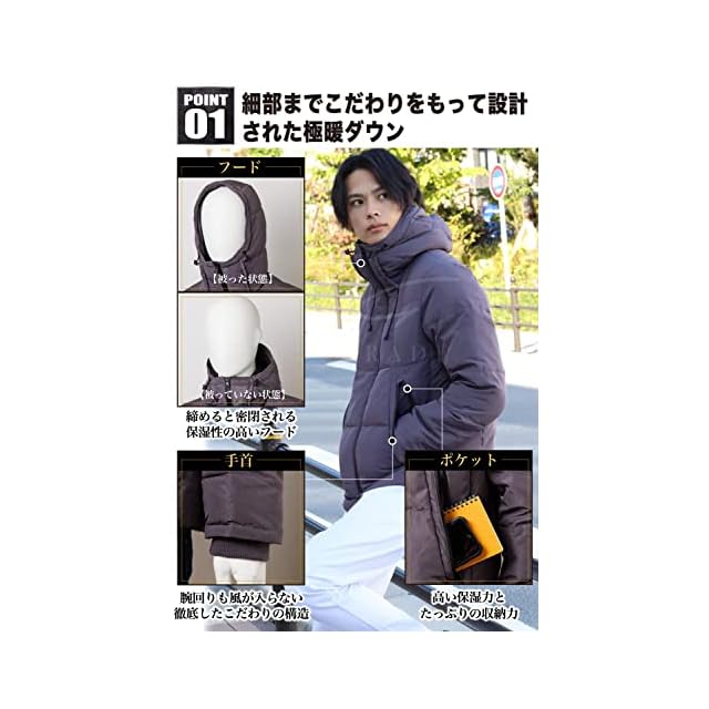 商品名:[GRADE] 極暖ダウン ダウンジャケット メンズ 『暖かさを極めたダウンジャケット』 ダウン 防寒 (JP, アルファベット, M, チャコールグレー)