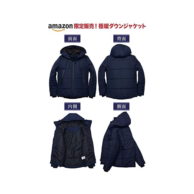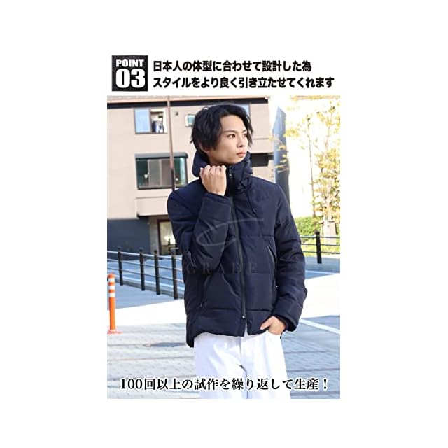 商品名:[GRADE] 極暖ダウン ダウンジャケット メンズ 『暖かさを極めたダウンジャケット』 ダウン 防寒 (JP, アルファベット, XL, ネイビー)