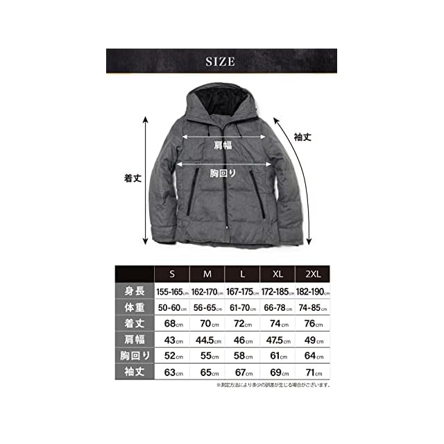 【 商品詳細 】生地・中綿共に高級ポリエステルを95%、ダウン5%使用。カラーはブラック、ネイビー、グレー、チャコールグレー。サイズはSサイズ、Mサイズ、Lサイズ、XLサイズ、XXLサイズをご用意しております。